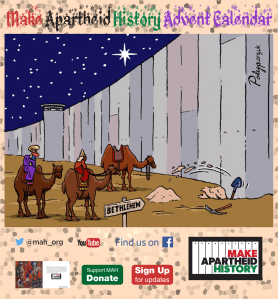 Make Apartheid History Advent Calendar goes live on December 1st - It’s our online Palestine Advent calendar which goes live today, Tuesday 1st December 2015. Our calendar has 24 star symbols and each day a star will be unlocked to release new content, right up until 24th December and will largely carry videos & info-graphics.