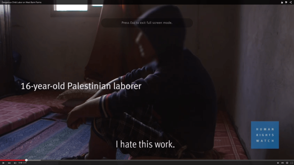 Israeli settlement farms in the West Bank are using Palestinian child labor to grow, harvest, and pack agricultural produce, much of it for export.