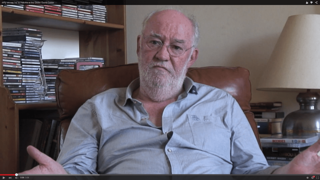 Interview with David Calder on the campaign against the Globe Theatre’s invitation to Habima, National Theatre of Israel in 2012.