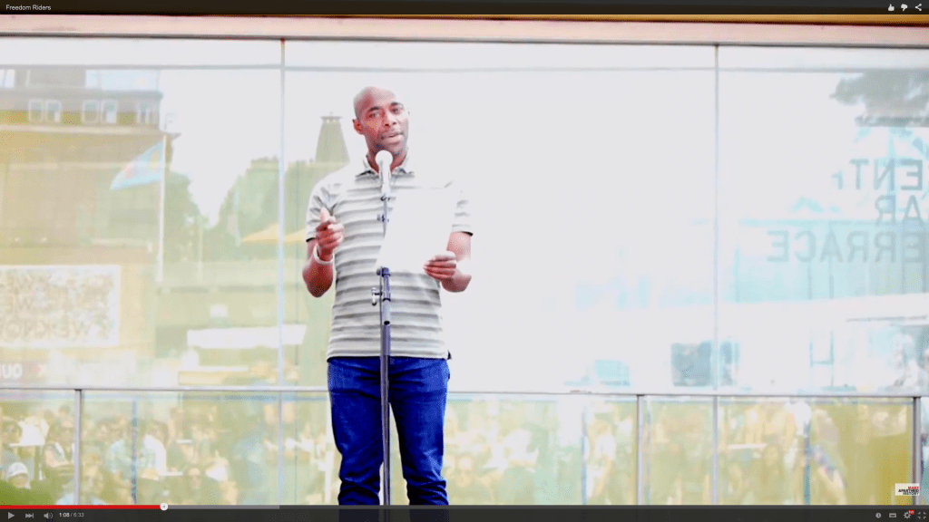 Paterson Joseph reads about Rosa Parks and a BBC report about the Palestinian Freedom Riders. Mandela Festival, Southbank Centre, London 2015.