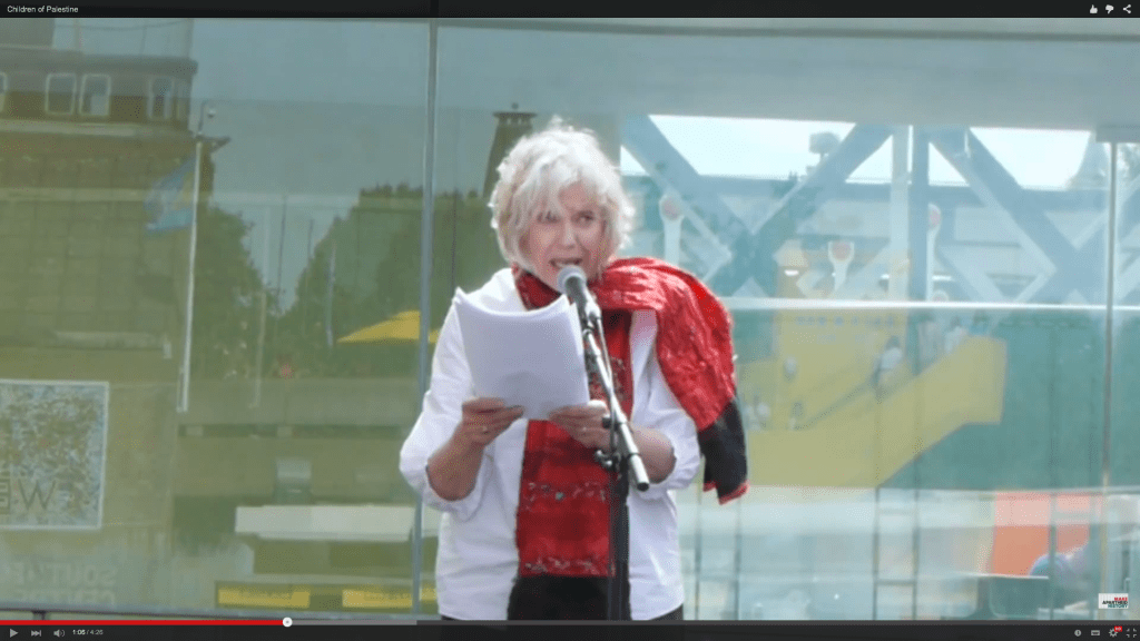 Kika Markham reads ‘From the Diary of an Almost-Four-Year-Old’ and ‘Oh Rascal Children of Gaza’. Mandela Festival, Southbank Centre, London 2015.